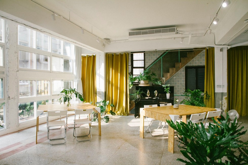 興起場域經營念頭的岱岱,當時一來到這個位於浦城街的空間後,馬上愛上了這裡的氛圍。大片的三面落地窗光,加上這裡空間寬廣還挑高,中間只有一根落柱,以老房來說相當少見,於是與身為空間設計師的天保,一起共同經營這個空間。