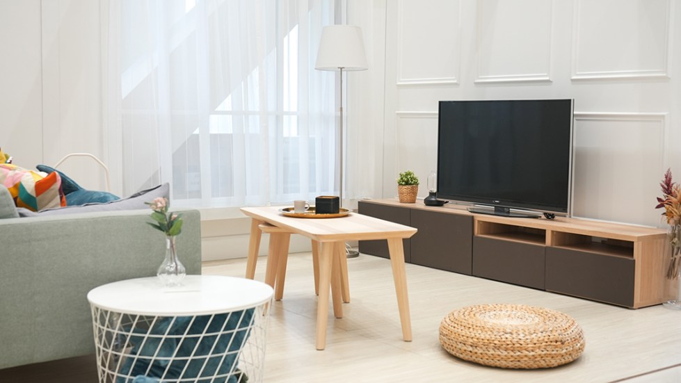 淺色系白橡木地板,與清爽的木質家具,擦撞出屬於北歐的浪漫篇章。當日光灑落在客廳,好家提供給你最溫暖的自然光家景,無論是拍戲或是商業攝影都很適合,還能快速SET景,想要現代或復古都可隨心所欲。
