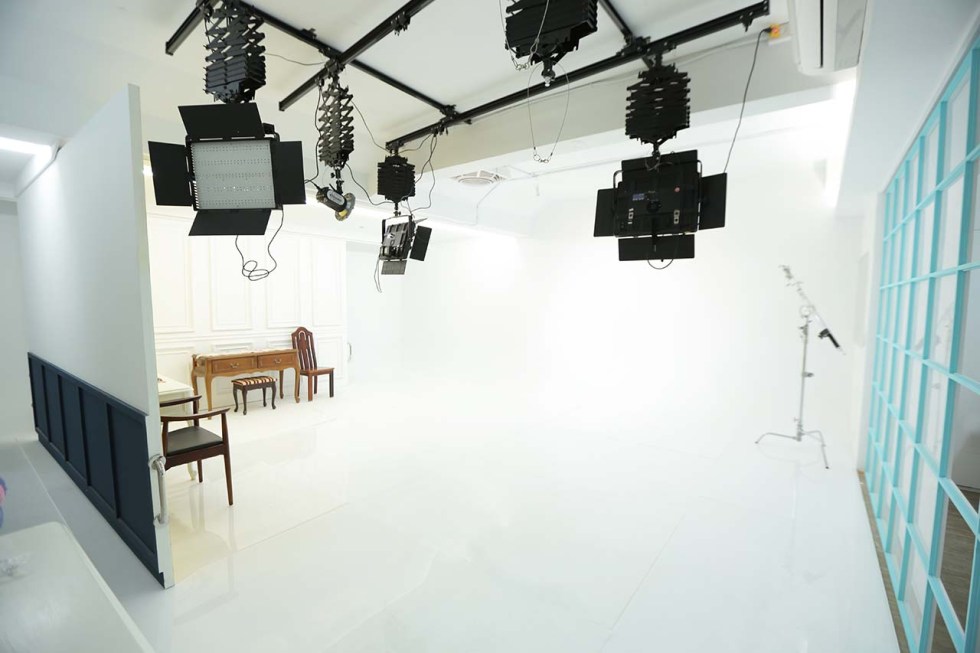 拍片場景目前有現代家景(客廳、房間、餐廚)懷舊家景(客廳、房間、廁所、餐桌)辦公場景(辦公室、會議、主管辦公室)一次僅接待一組客戶。