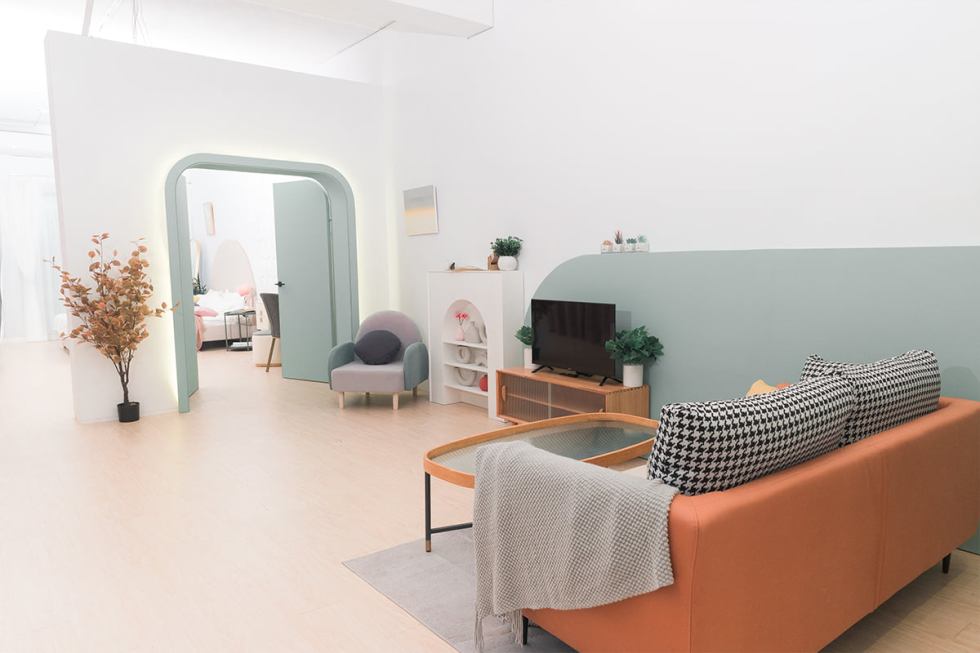 拍片場景目前有現代家景(客廳、房間、餐廚)懷舊家景(客廳、房間、廁所、餐桌)辦公場景(辦公室、會議、主管辦公室)一次僅接待一組客戶。
