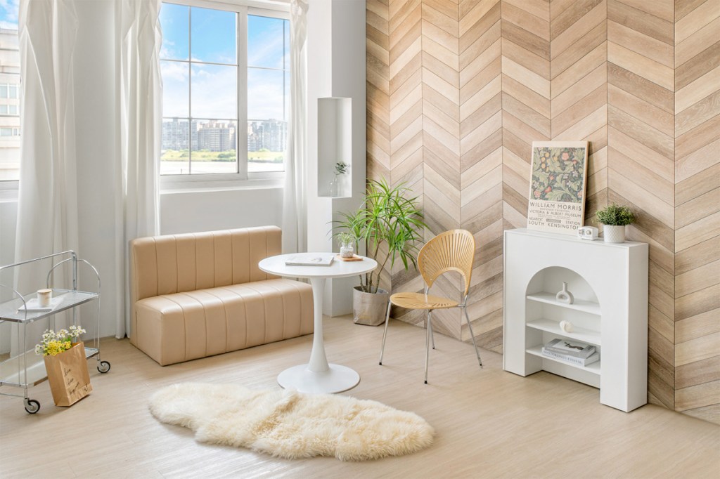 C room:共 8 個場景,16 坪,容納約20人,空間特色為北歐家居木地板設計風與氣派大拱門。