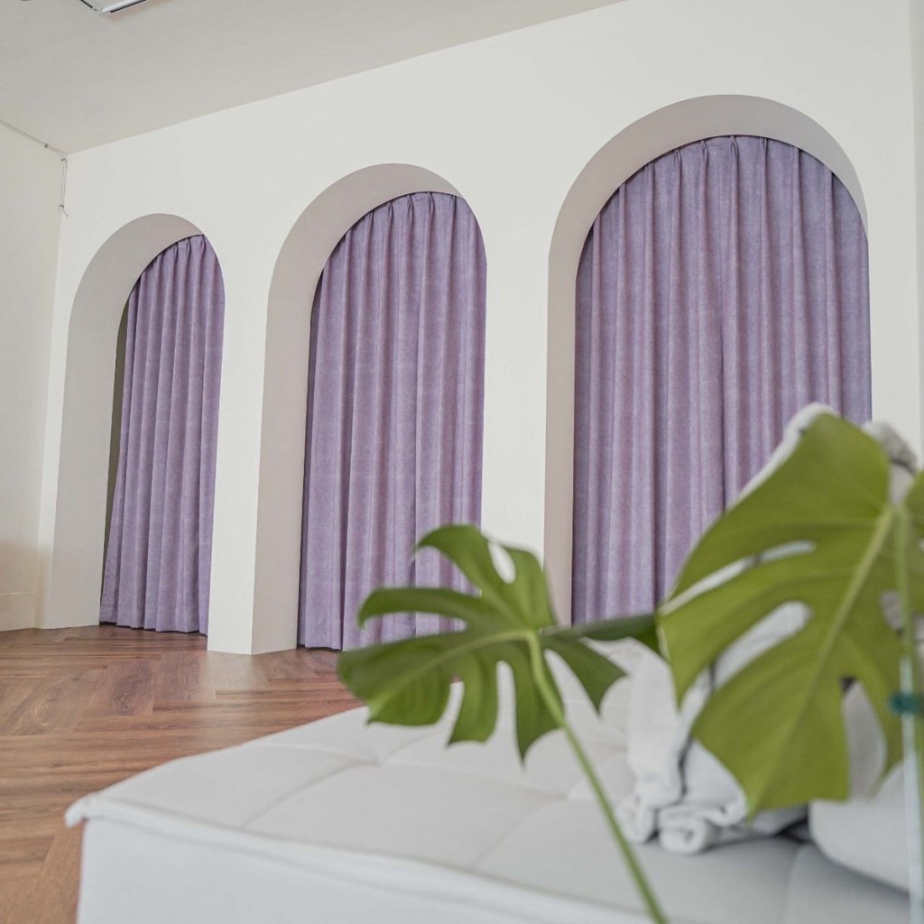 擁有長達12米自然光的攝職島,最受人客歡迎的莫過於落地窗旁泡缸市景,這個角落太療癒!現場也有提供拱門場景,全區採開放設計皆可搭出最理想的專屬棚景。