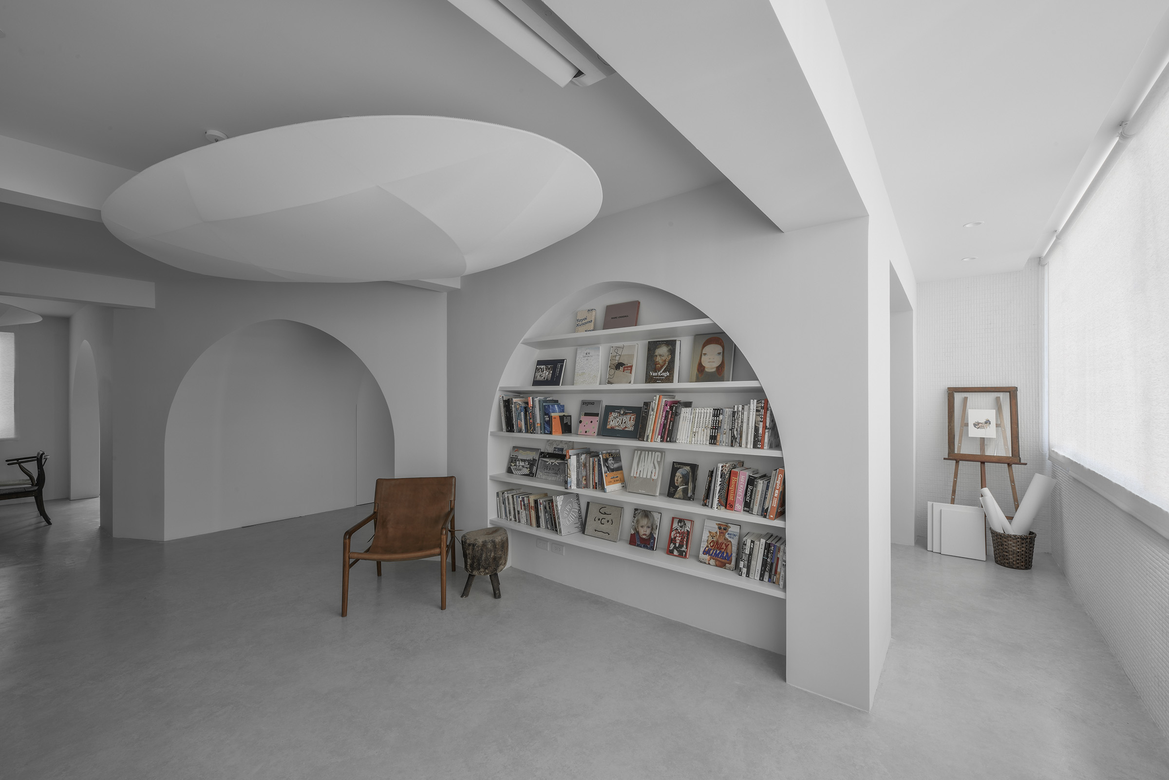Yu An Chou 由插畫家 奧斯卡 擁有的藝術插畫類書籍的私人圖書館,也有許多外文書,每本都好想好想收藏,相信用心看可以花上一整天的時間。 室內設計與傢俱上有著不少巧思,圓拱狀的門為了不顯得死板,其實都不是那麼完美對襯的圓形。桌椅也是特別訂製款,分別代表圖書館主人生命中重要的事物們。