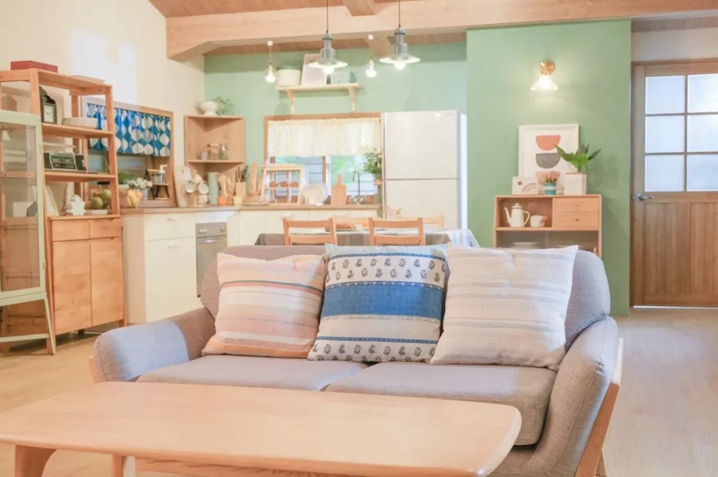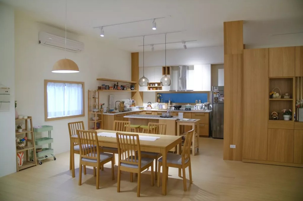 內有兩個客廳、兩個廚房、兩個浴室、兩個房間、一個梳化間、一個清水模自由空間、一個花園露台。