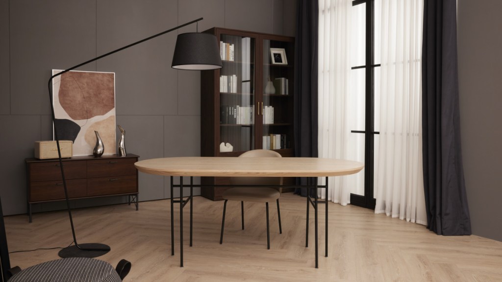 內有一個主管辦公室、12個員工座位區、沙發區、茶水間活動櫃、大露台。