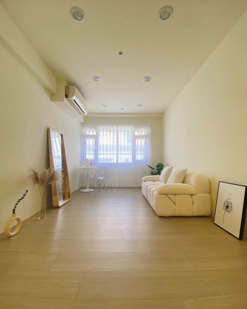 坪數25坪,每小時$500起,除一般背景捲軸,另有莫蘭迪色實景牆、藤色居家實景,WILL是一個溫馨又Cozy的可愛空間。