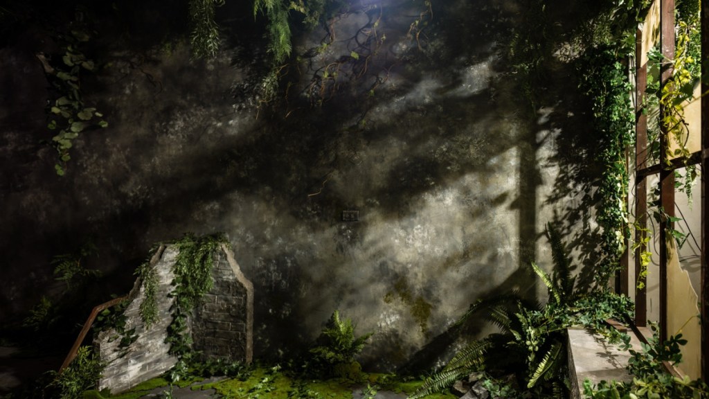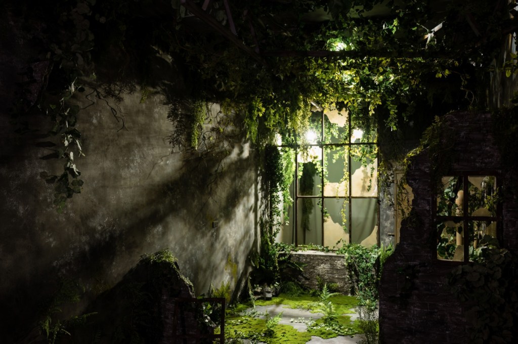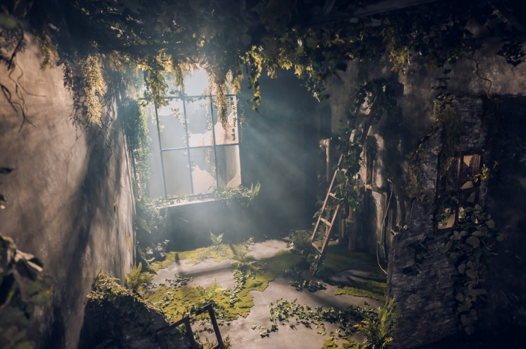 充滿廢墟風格的貓棚,斑駁的水泥牆、復古窗櫺、綠色藤蔓植物,當窗外光線灑落,形成一股神秘奇幻的氛圍;另有一古典中式場景藏龍閣,點點燭光充滿中國風,每個場景空間風格迥異。