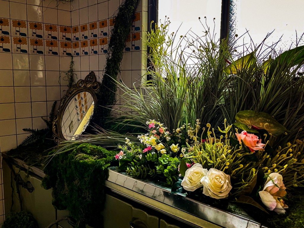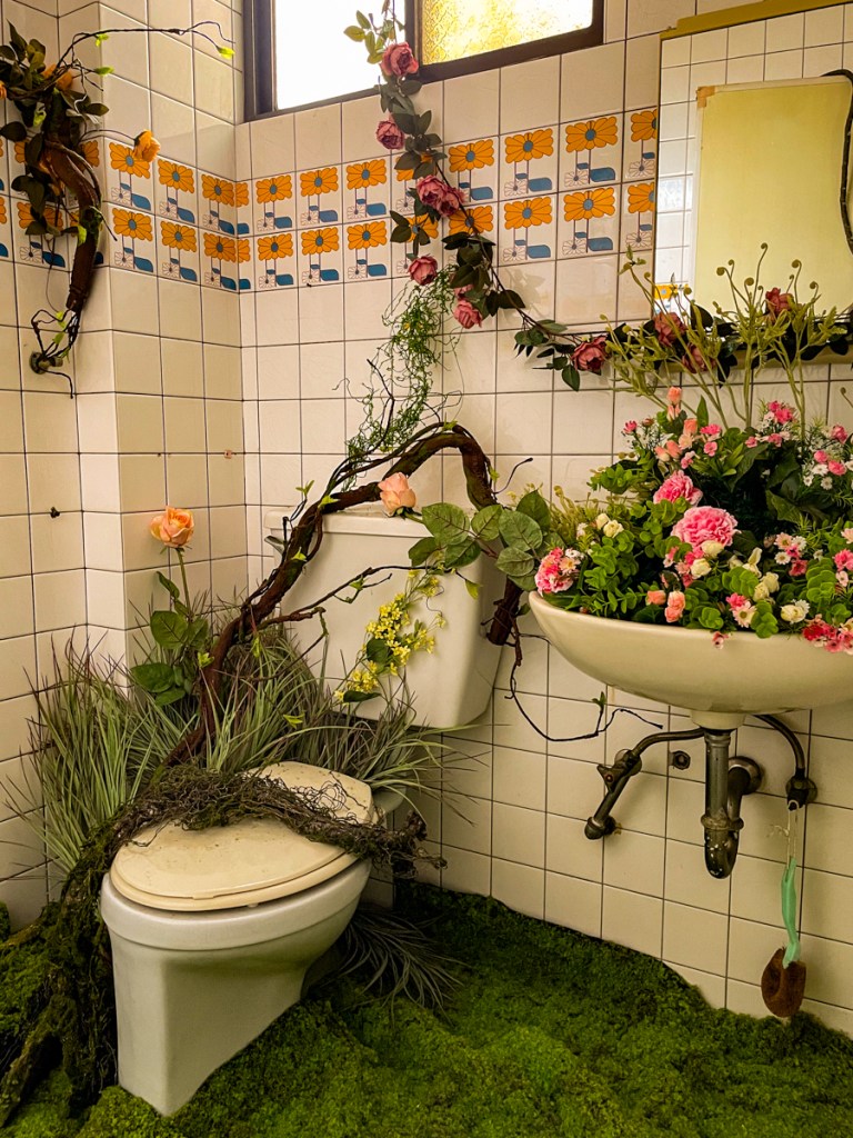 如梭擁有獨特的廢墟棚,有一種王家衛導演作品的奇幻感,野花閒草開得漫山遍野,從廚房到浴室,長滿每一個角落,陳舊的壁磚更顯懷舊復古感。