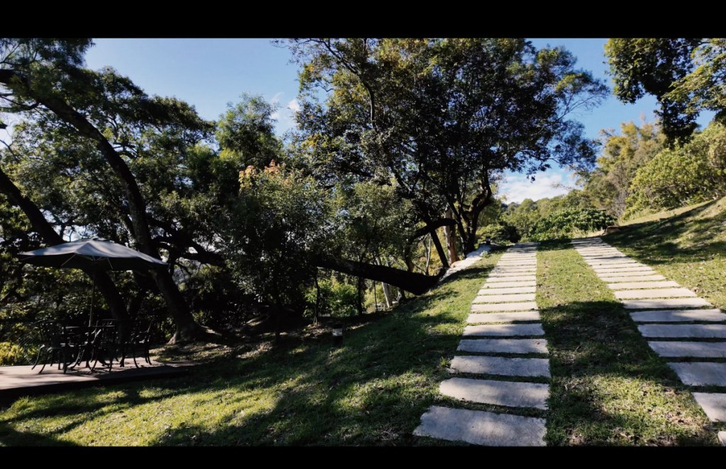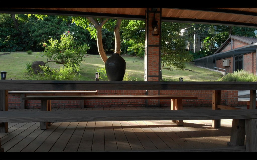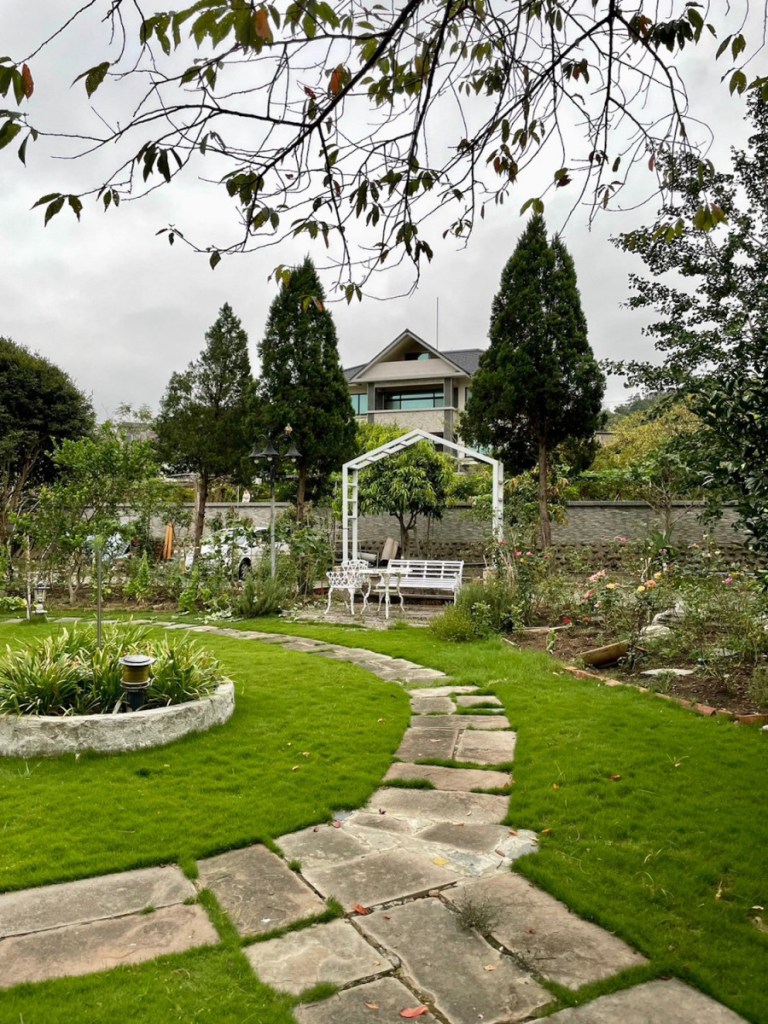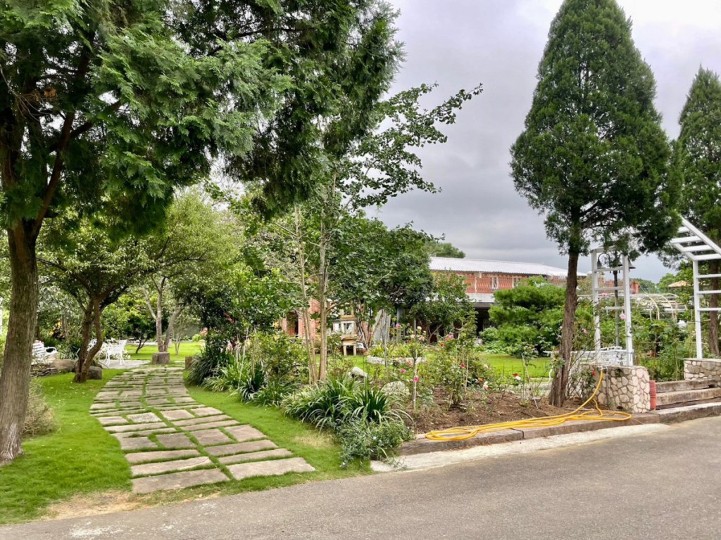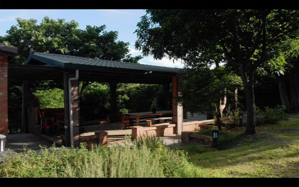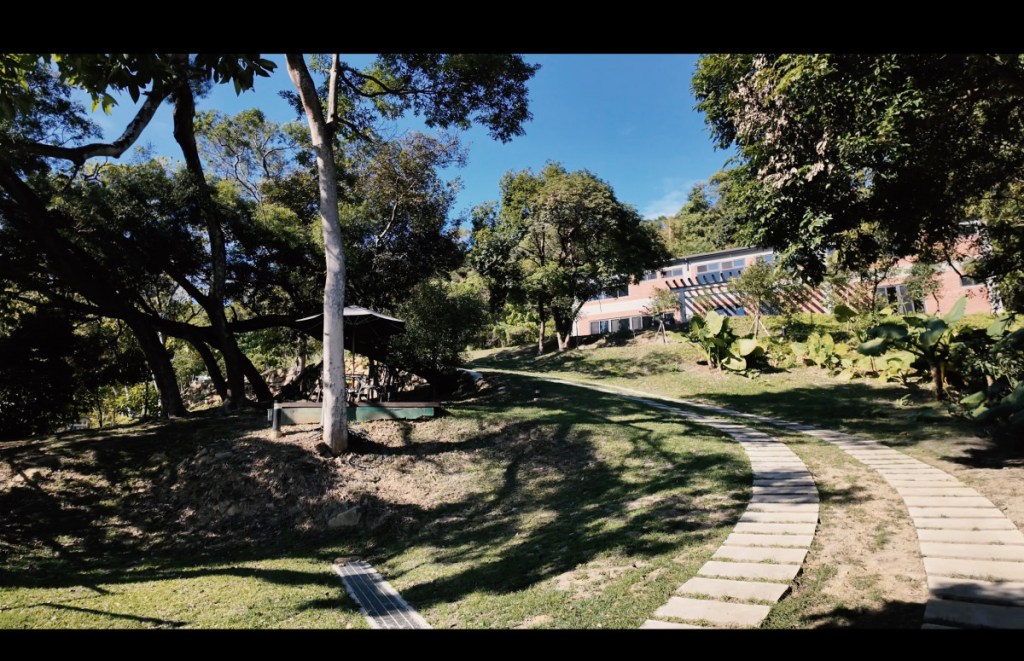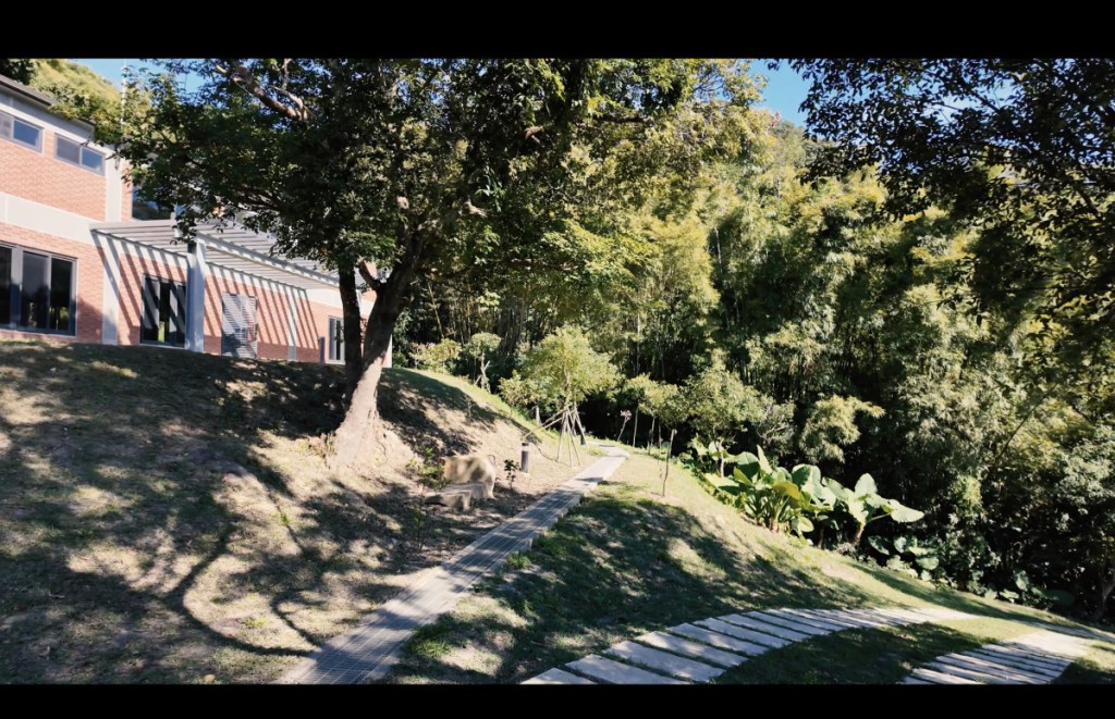 位於內湖山腰上,庭院前方是一望無際的台北市景,山丘、草坪綠地、樹林,享受被青山環抱的幽靜美好,這裡很適合做為戲劇或電影場景取景之途。