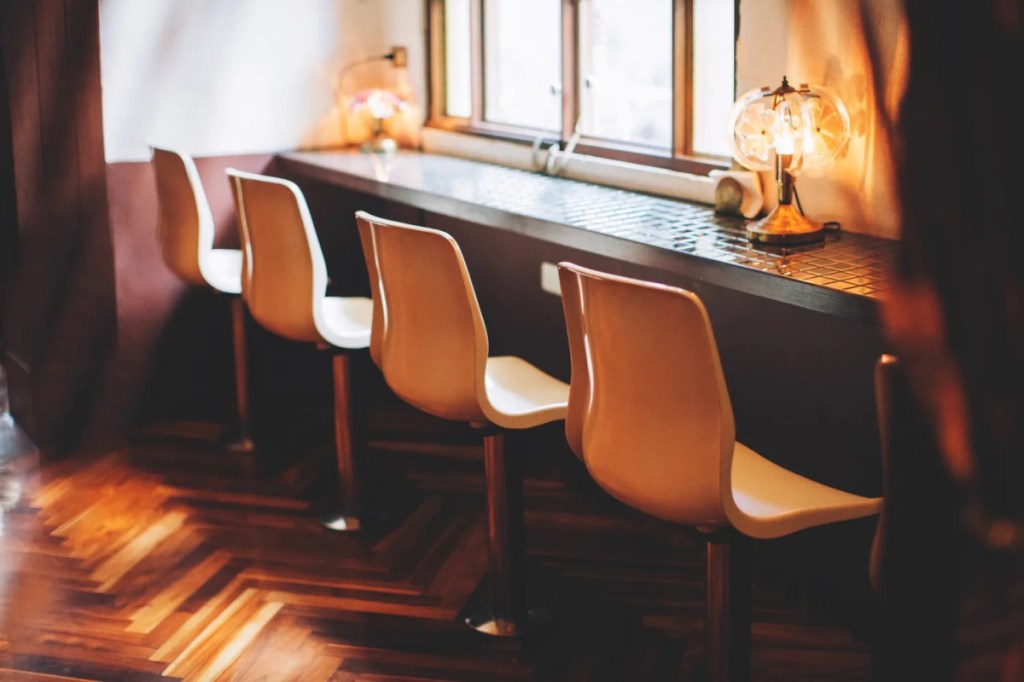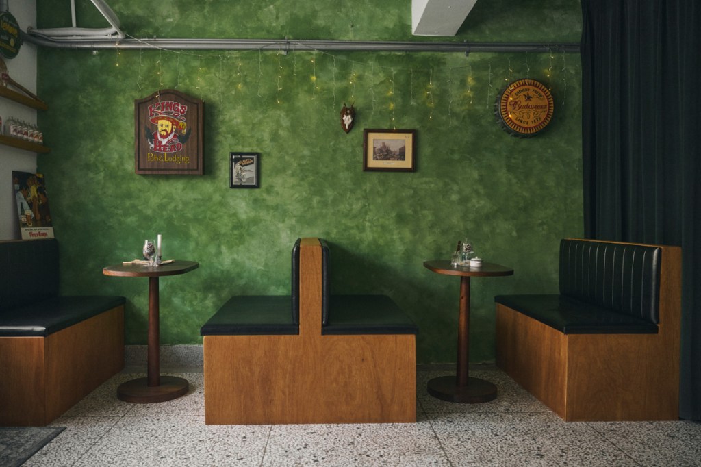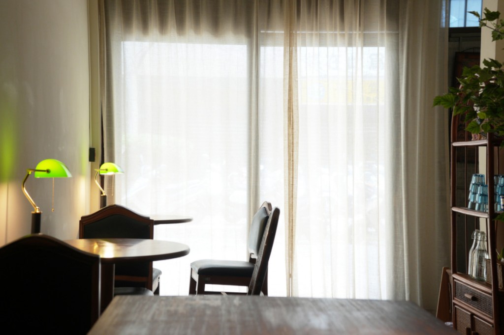近百坪連棟式老宅,將二樓牆壁打通引入光線,讓每個場景都能擁有無敵採光,保留古早味磨石子地板與復古窗櫺,搭配台式泡沫紅茶店座椅,有一種時光倒流的感覺。