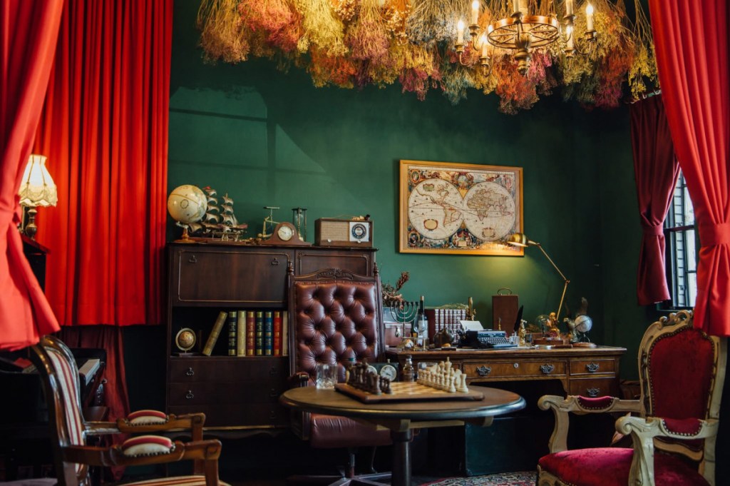 Dream Light主打一個樓層一個場景,免去與他人共用的不便,復古書房裡有溫莎椅、玻璃書櫃、留聲機、皮沙發,風格溫馨典雅,四樓另有乾燥花房可供拍攝。