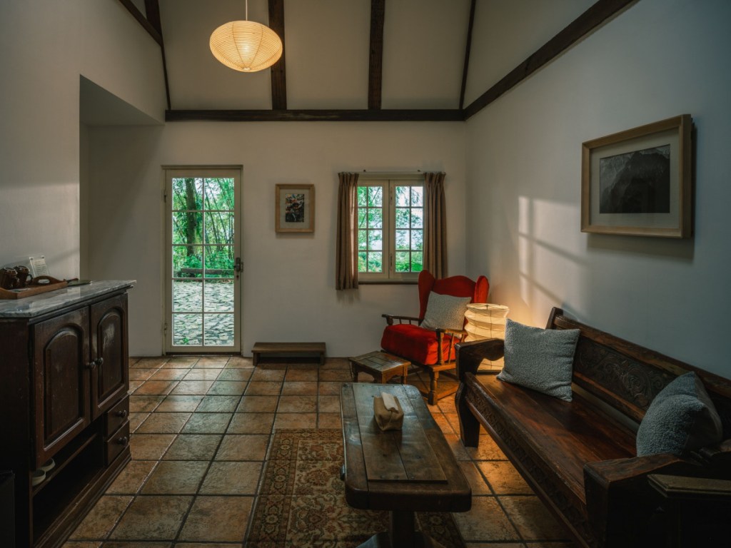 位於花蓮的梯田山民宿,整體環境空靈又靜謐,從大廳到起居空間都採用木質老件家具,屬於低調沉穩的復古鄉村,整個民宿被山林綠意環抱景觀超美。
