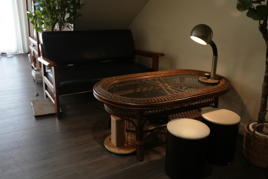 位於新北四層樓老建築,一樓日式昭和感咖啡廳景,附可開火的廚房,二樓歐風復古景,點亮小圓桌上綠色枱燈,彷彿走進時光隧道,其他樓層提供日式棚景、乾燥花棚景。