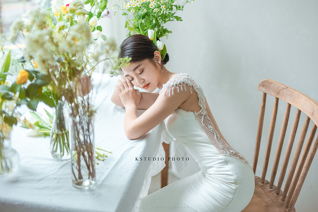 小清新韓風棚,擁有自然採光與療癒植栽陪襯,適合偏愛森系風格婚紗的情侶們,以水泥牆、乾燥花、老件家具,復刻時光隧道裡的浪漫場景。