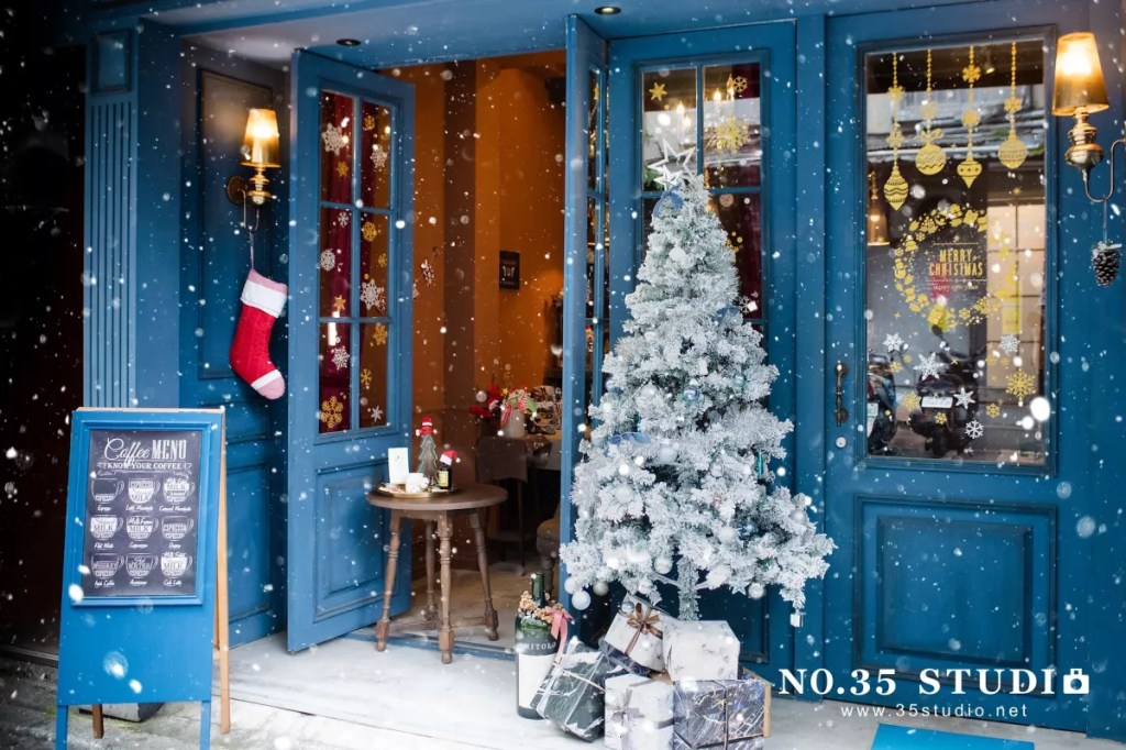 人氣No.1歐風復古35Cafe場景,完整復刻歐洲大街上的咖啡廳,藍色木質落地窗搭配酒吧吧台,復古又時髦,還能因應節慶變化改造成聖誕雪景、萬聖節,是新人指定最高的場景。