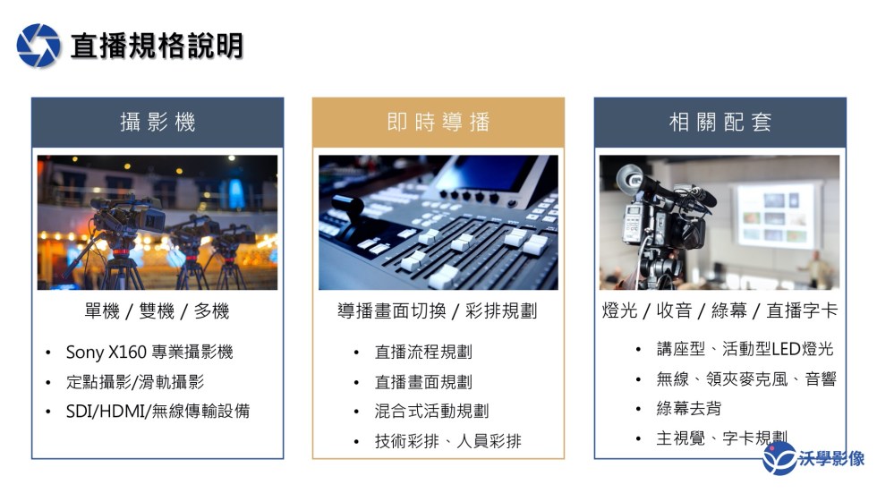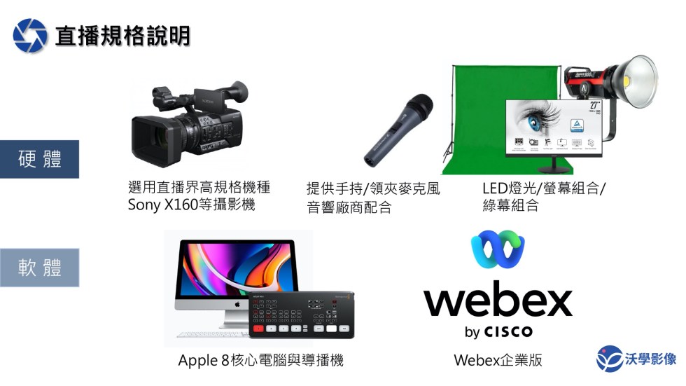 沃學影像專攻活動直播、視訊會議、混合式直播、說明會、記者會。